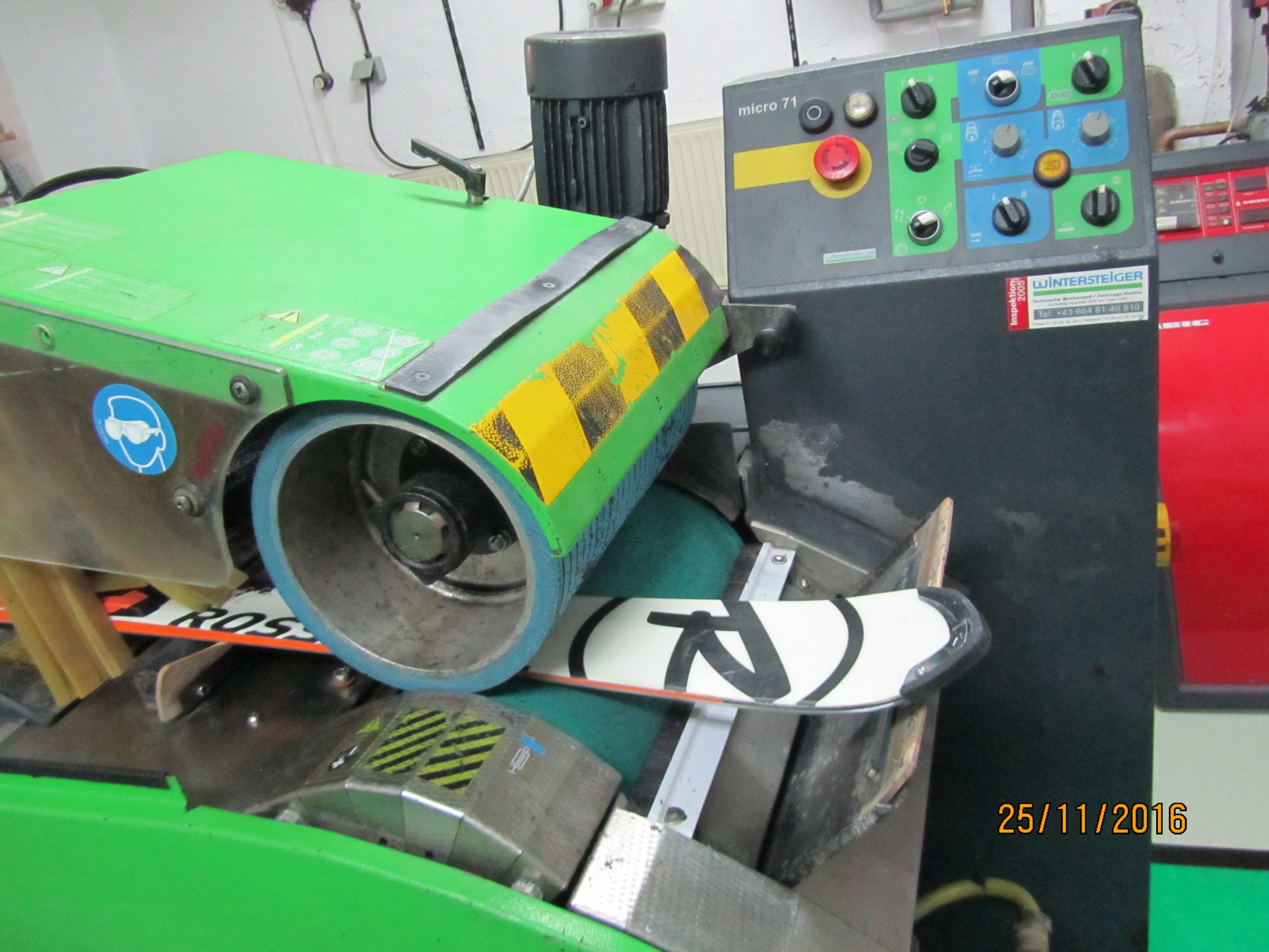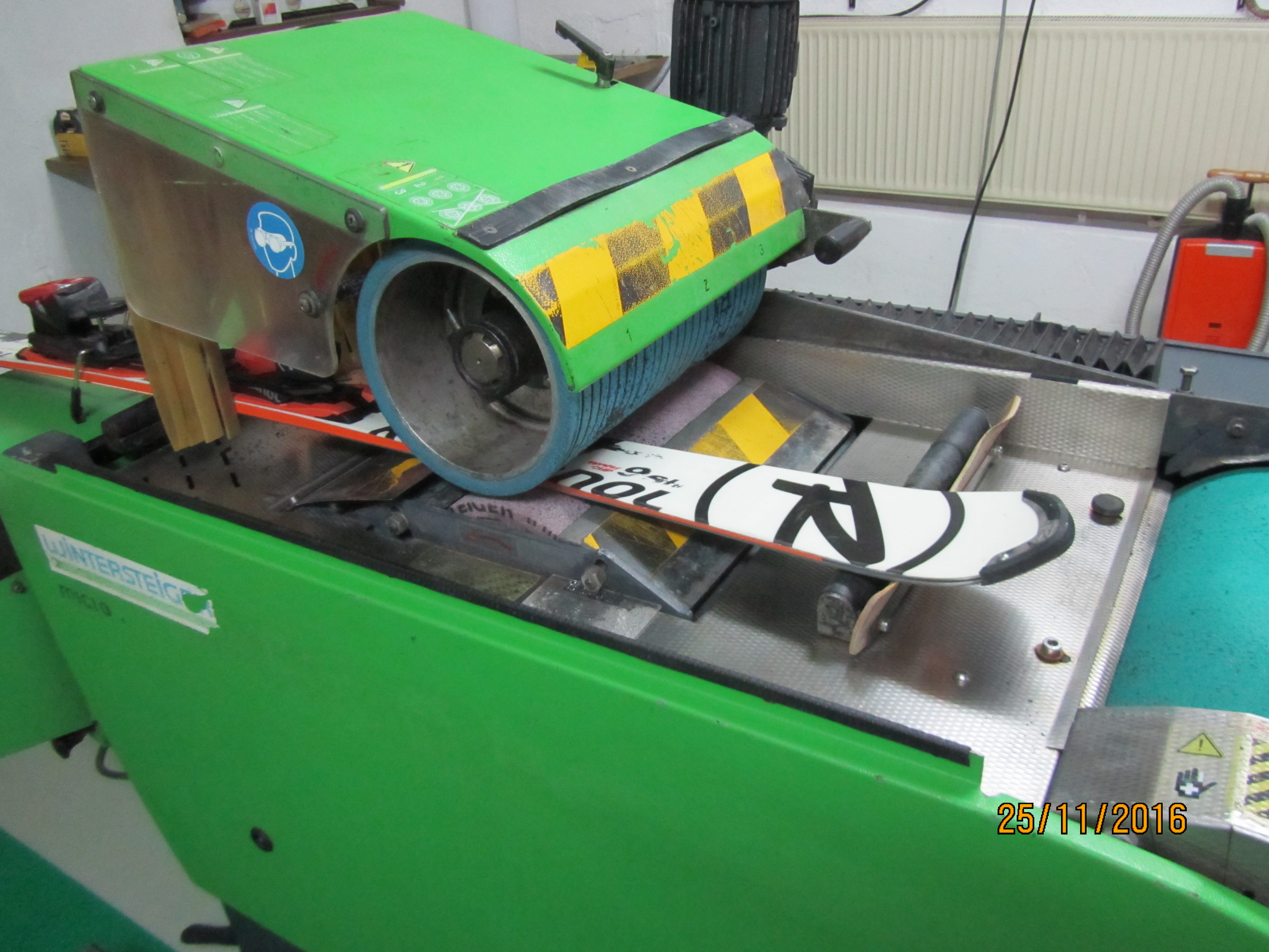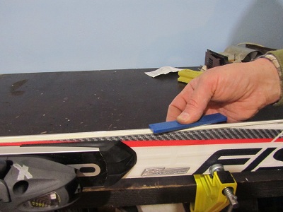 Z brusnim kolutom na drsni ploskvi naredimo vzdolžno obrusno površino, ki izboljša drsne lastnosti smuči in preparacijo.